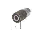 Advantages:  •No dirt can penetrate, as the couplings on the smooth surface "flat face" can be simply wiped clean, •Due to the design of the coupling, axial forces can be absorbed well. Particularly suitable for use on hydraulic hoses.